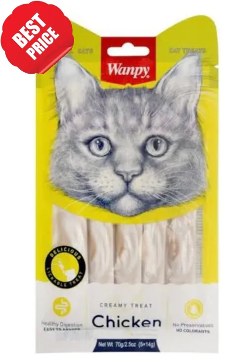 Wanpy Creamy Lickable Treats in chicken flavor is a popular choice among cat owners who want their cats to have a delicious and healthy treat. The liquid treat is designed for cats of all breeds and ages above three months for a delicious experience. Wanpy treats are made out of natural ingredients such as chicken, taurine, and vitamins. Wanpy treats will be ideal to supplement the daily cat diet, with a lower fat content to suit every weight-conscious owner. Even as a tool for a closer bond between you and your cat, many people enjoy feeding the cat out of the sachet themselves.